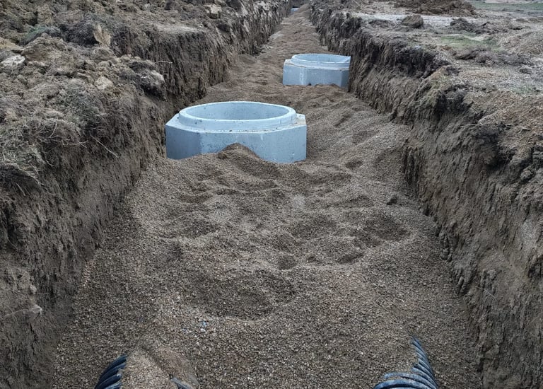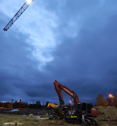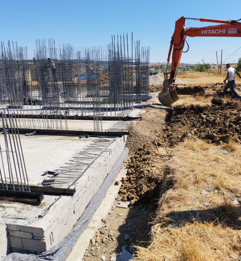 Temel kazıları ve altyapı hazırlıkları.